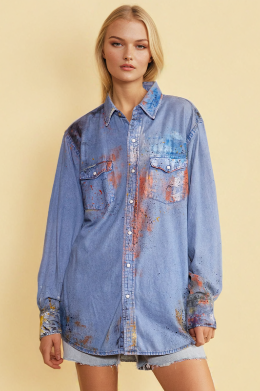 Artisan Hand-Painted Urban Chic Denim Shirt